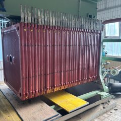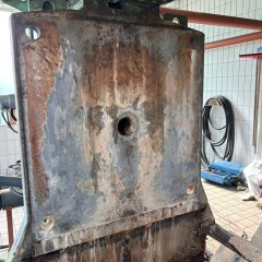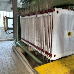 In dieser Zeit wurden alle 95. Platten vollständig aufbereitet und alle Filtertücher gewechselt. Das Gestell, der Ständer und die Brückenauflage überholt und die Filtertuchabspritzeinheit inklusive aller Saug- und Druckleitungen erneuert. Auch die fast 40 Jahre alte Waschwasserpumpe wurde durch eine neue hochmoderne Pumpe ersetzt.